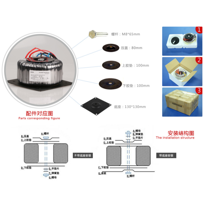 | Secondary Voltage (AC) | 2x6V, 2x12V, 2X15V, 2x24V, 2x30V, 2x35V, 2x40V, 2x50V, 2x115V, 12V, 24V, 48V, 110V, 220V, Contact us for other voltage |